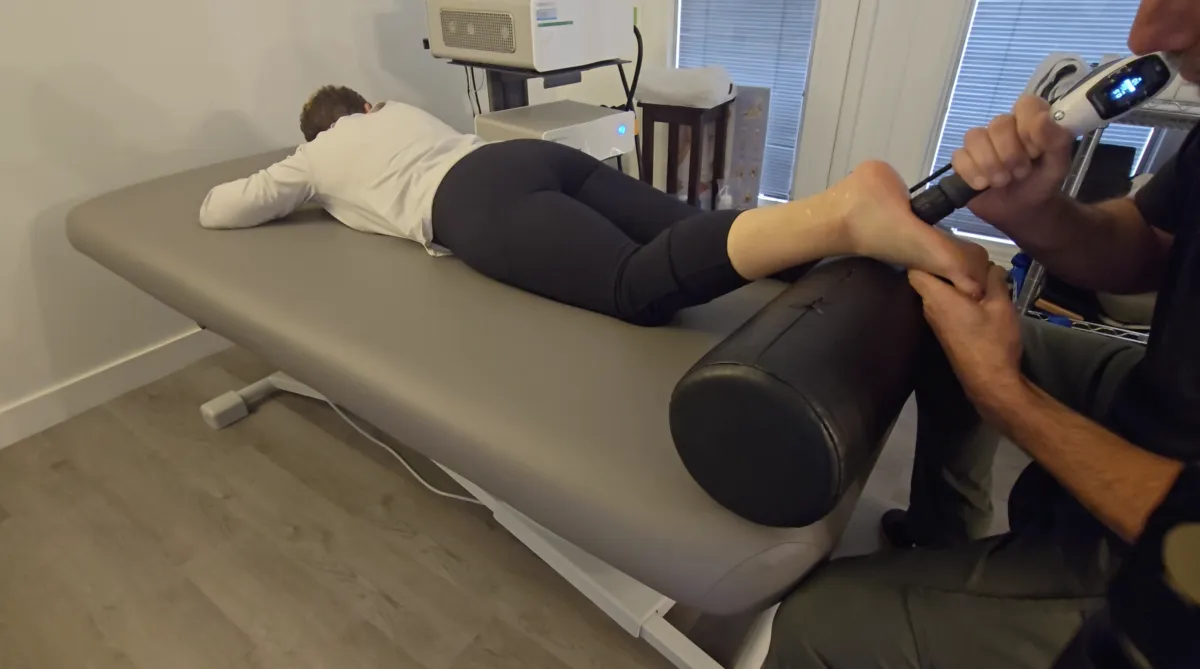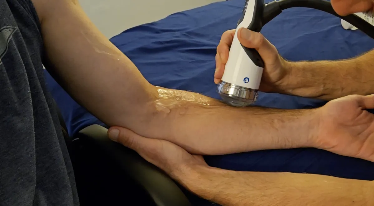 Trauma to the tendons can generate calcified fibroblasts in the injured area. Calcified fibroblasts cause chronic pain which decreases mobility. Using acoustic wave pulses, calcification is cleared from the damaged area after being broken into small particles that are easily absorbed by the body. This reduces pain and restores function.